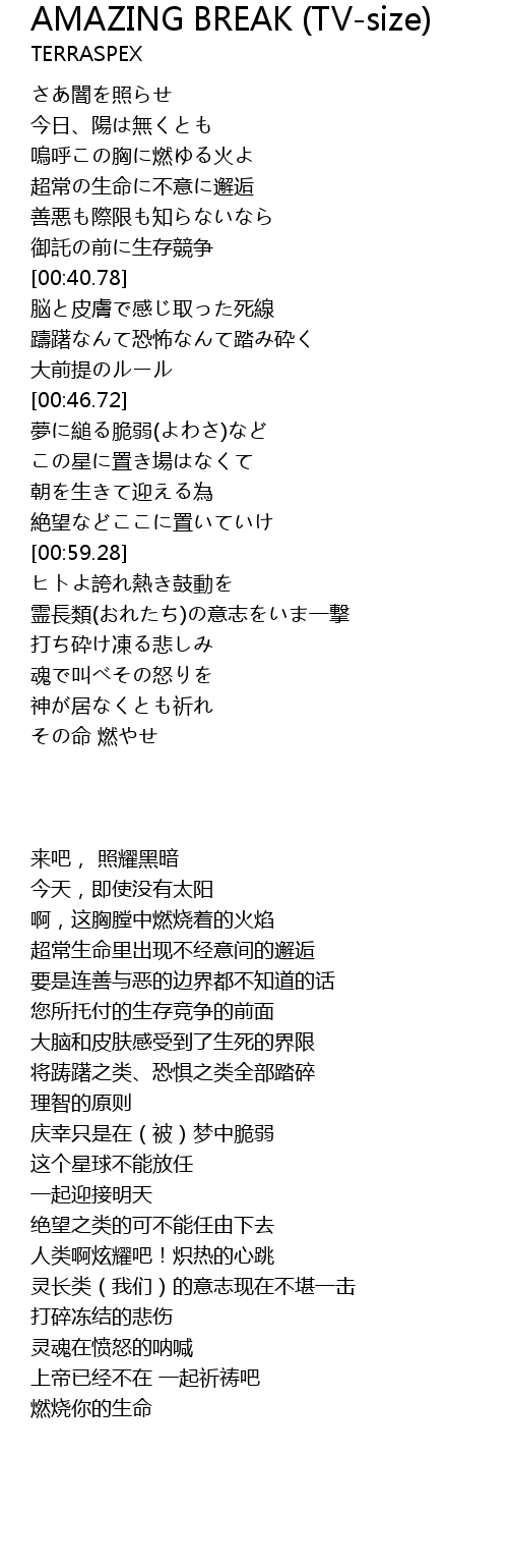 | [00:59.44] | ヒトよ誇れ熱き鼓動を |