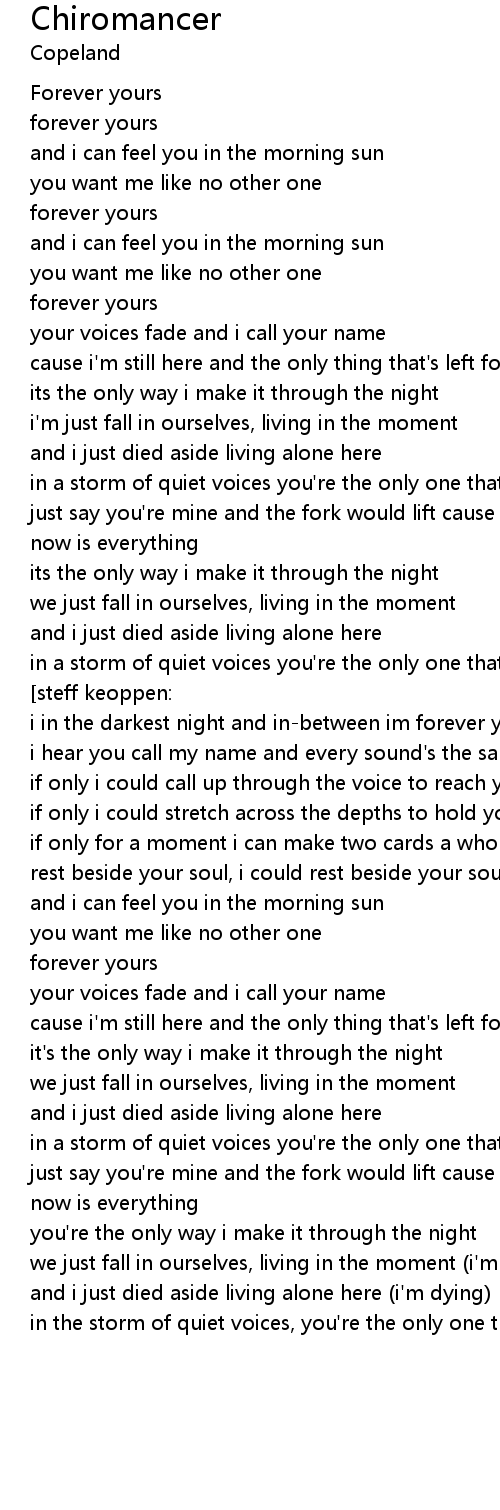 | in a storm of quiet voices you're the only one that i can ever find | |
