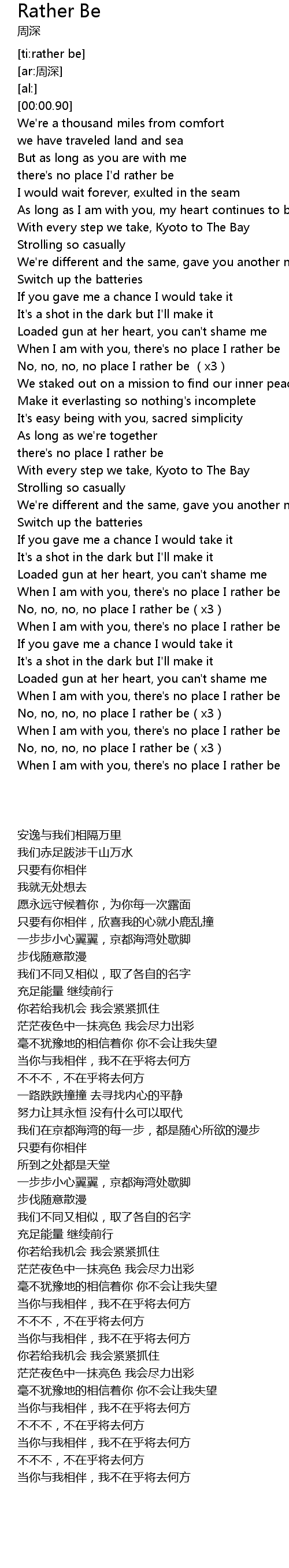 | [01:16.52] | When I am with you, there's no place I rather be |