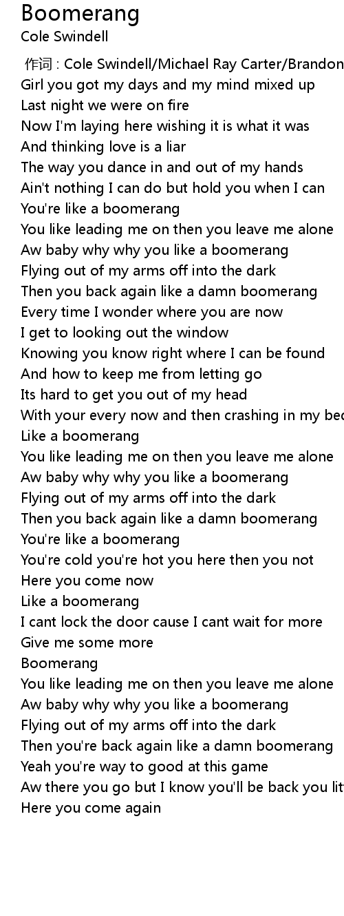 | [00:39.80] | Aw baby why why you like a boomerang |