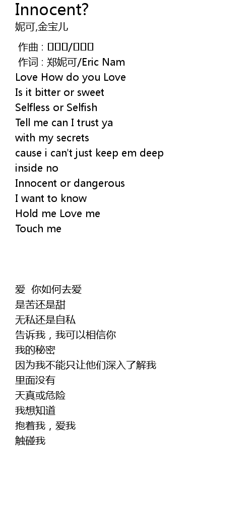| [00:01.00] | zuò cí : zhèng nī kě Eric Nam |