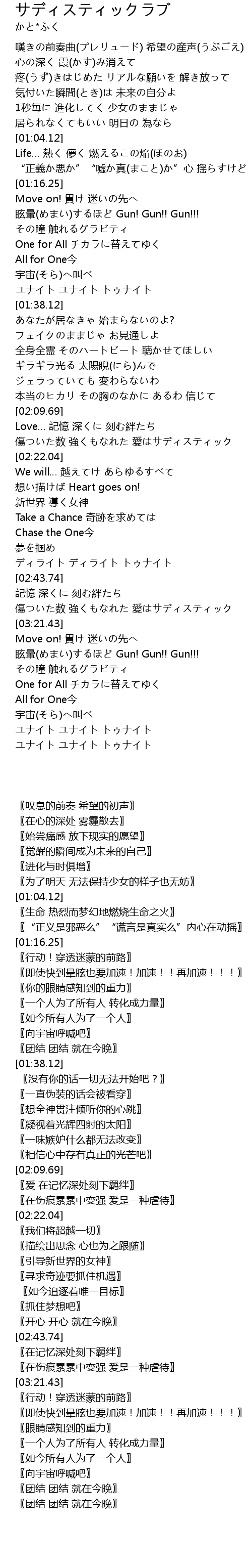 | [03:44.63] | ユナイト ユナイト トゥナイト |