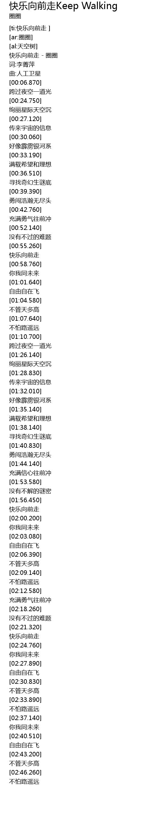 | [00:01.000] | 快乐向前走 - 圈圈 |