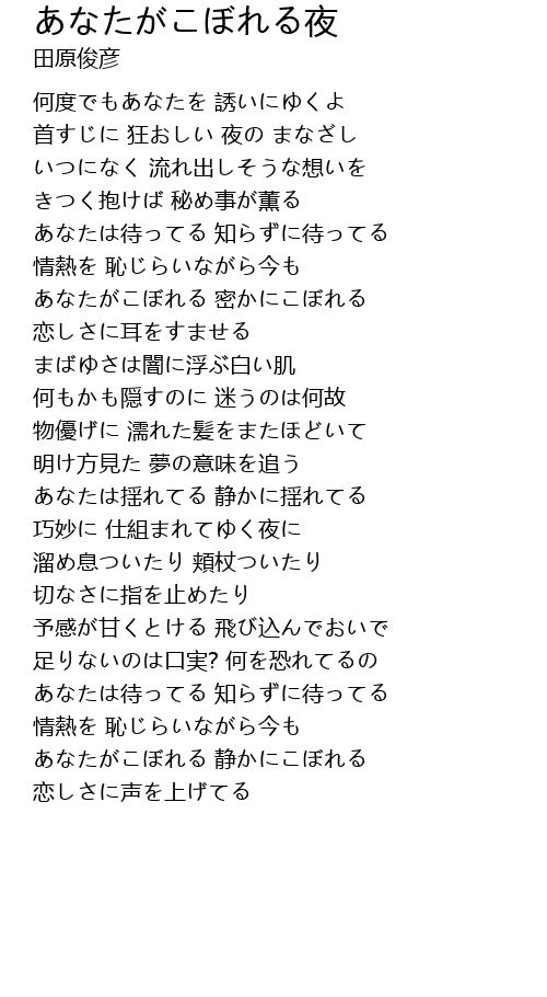 | 首すじに 狂おしい 夜の まなざし | |
