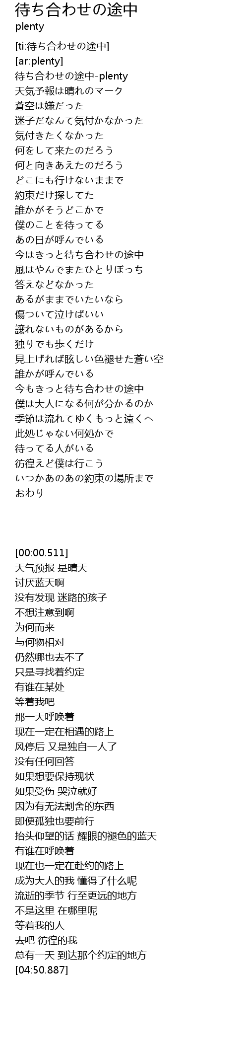 | [00:00.511] | 待ち合わせの途中-plenty |