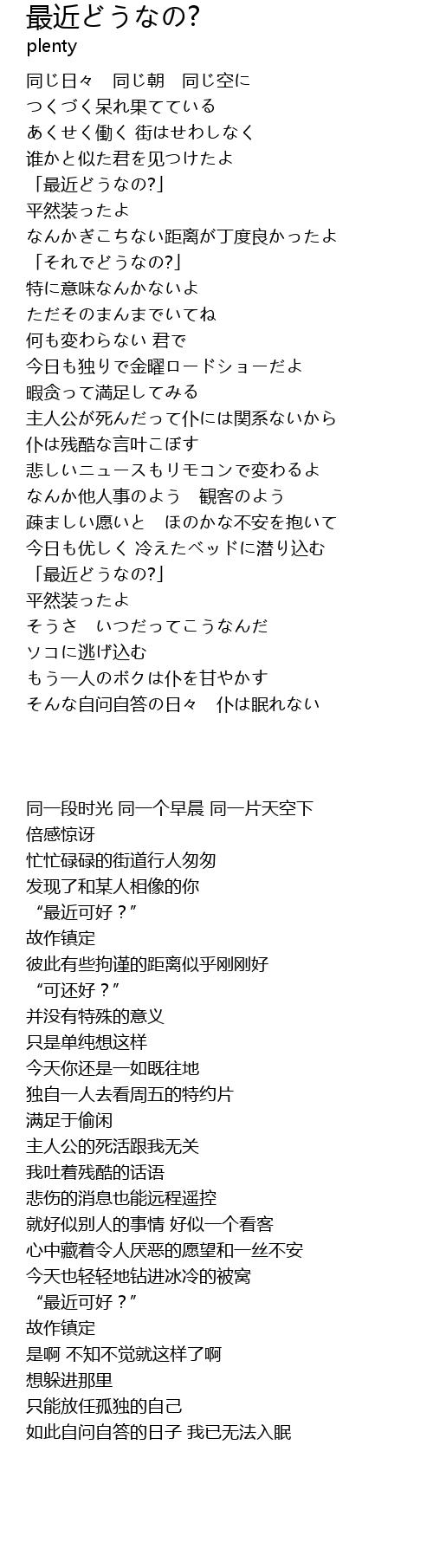 | [00:41.01] | 「最近どうなの?」 |