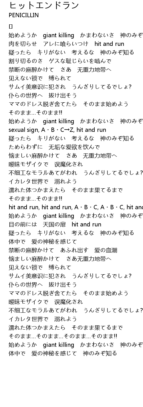 | hit and run, hit and run, A B C, A B C, hit and run Z | |