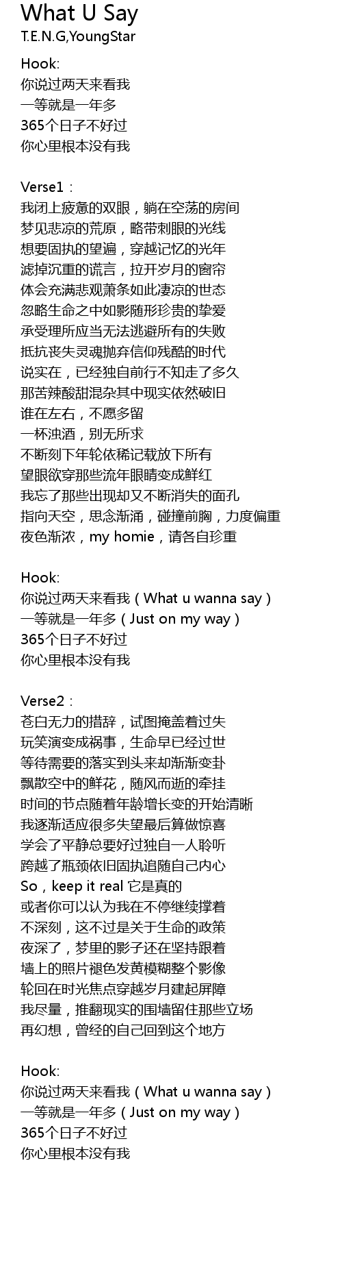 | nǐ shuō guò liǎng tiān lái kàn wǒ What u wanna say | |