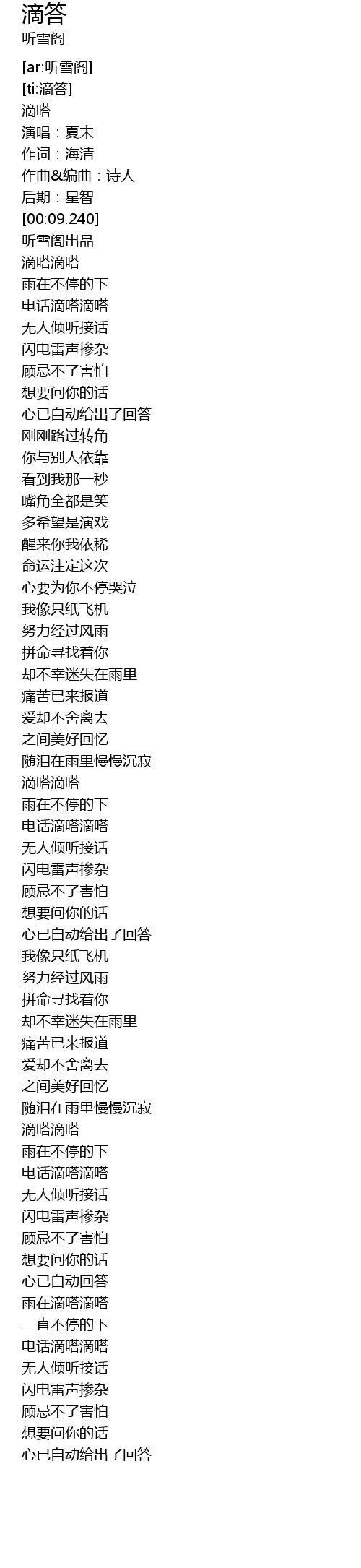 | [00:21.020] | 电话滴嗒滴嗒 |