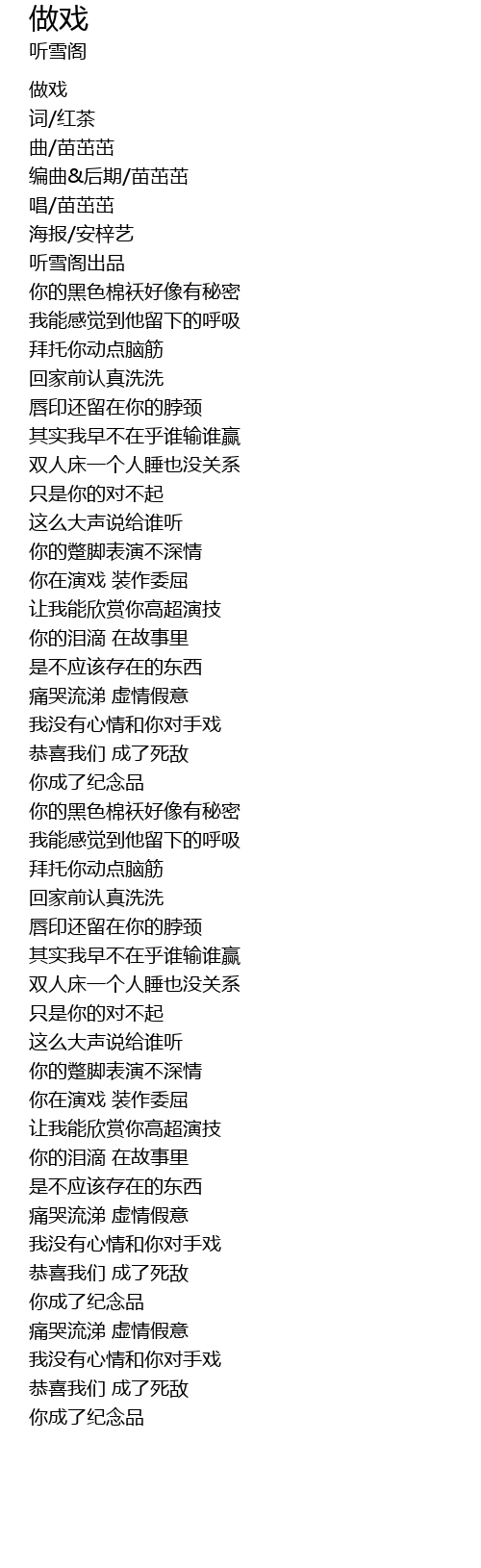 | [00:06.710] | 编曲&后期/苗茁茁 |