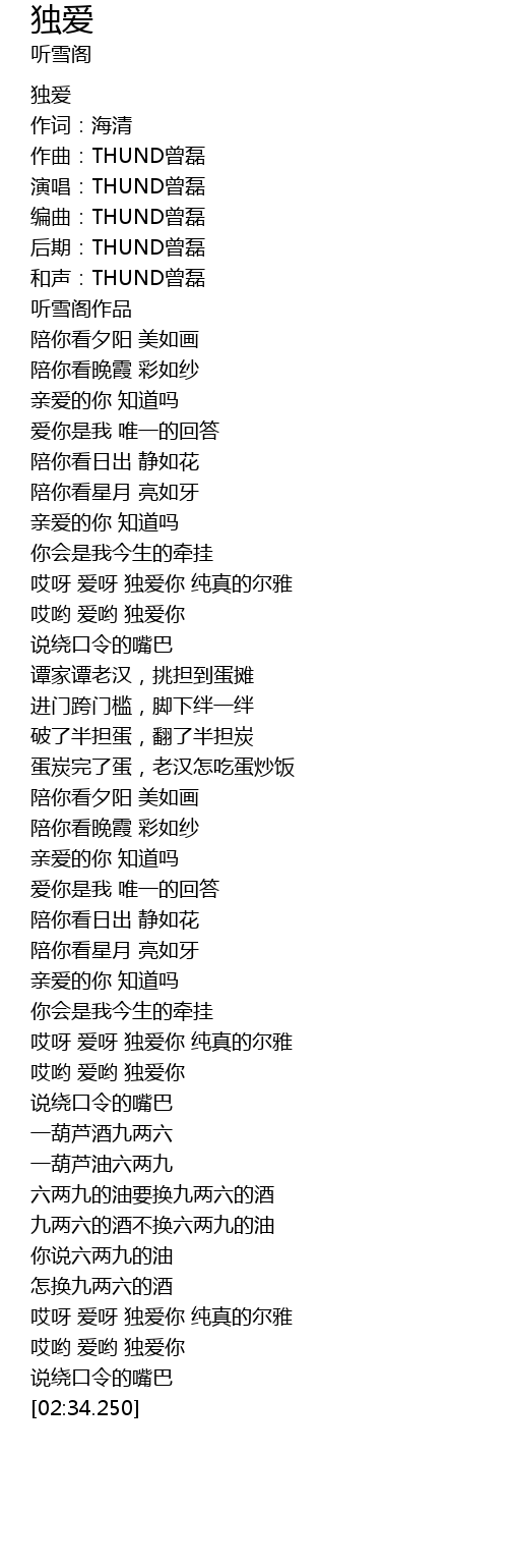 | [01:58.330] | 哎哟 爱哟 独爱你 |