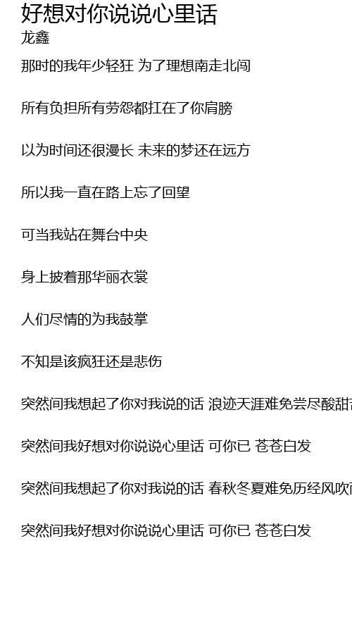 | 突然间我好想对你说说心里话 可你已 苍苍白发 |