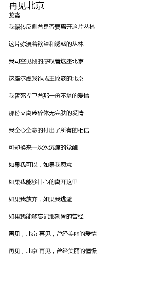 | 再见,北京 再见,曾经美丽的爱情 | |