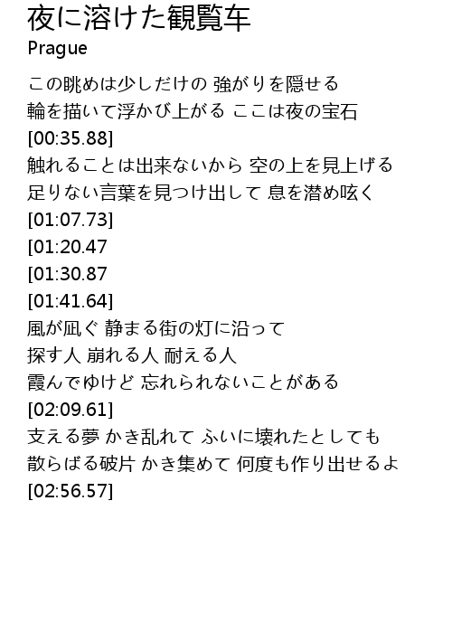 | [01:52.62] | 風が凪ぐ 静まる街の灯に沿って |