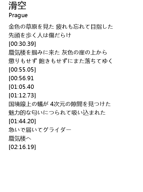 | [01:46.36][00:56.91] | 開いた世界へグライダー |