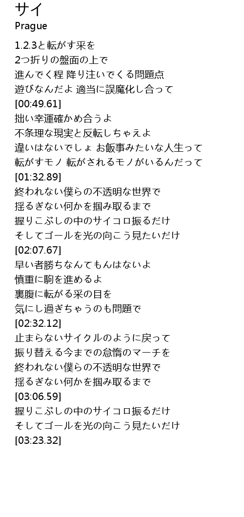 | [01:53.08] | 握りこぶしの中のサイコロ振るだけ |
