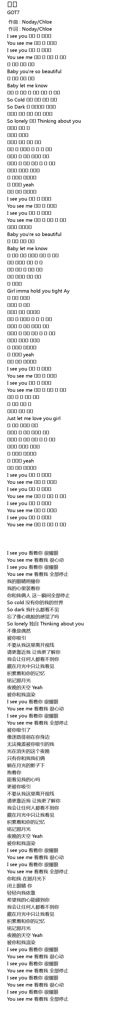 | [00:15.550] | I see you 너를 봐 눈부셔 |