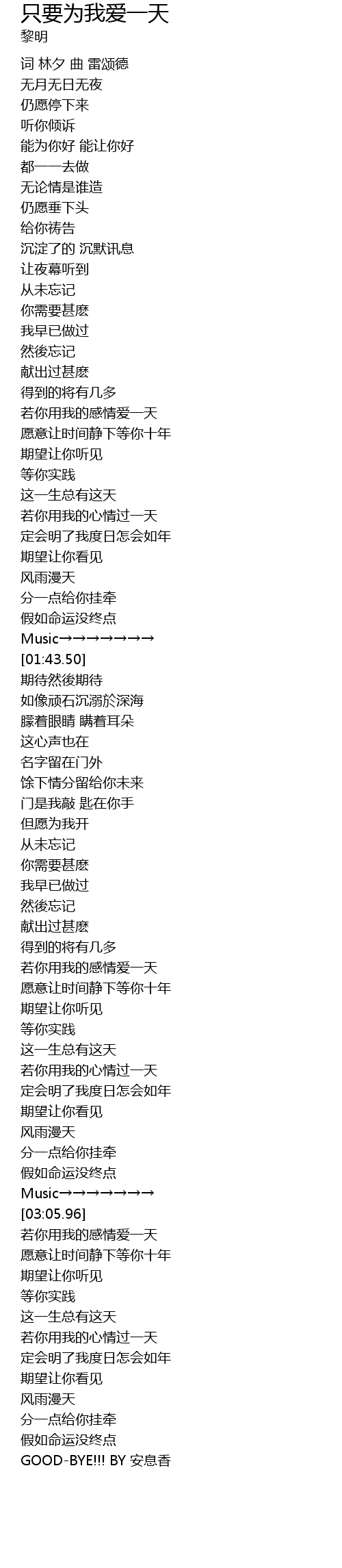 | [03:11.71] | ruo ni yong wo de gan qing ai yi tian |