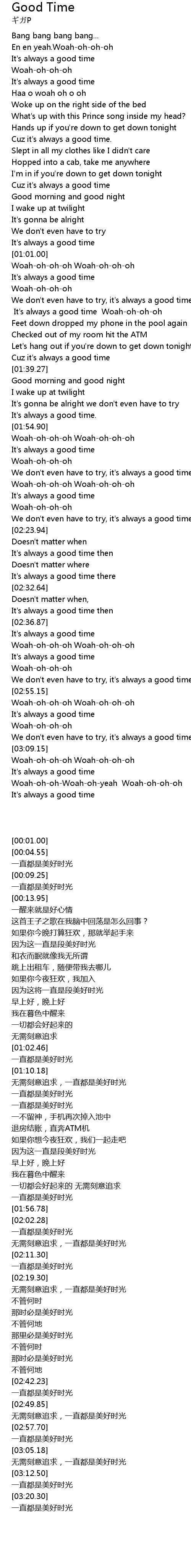 | [01:20.16] | It's always a good time Woah-oh-oh-oh |