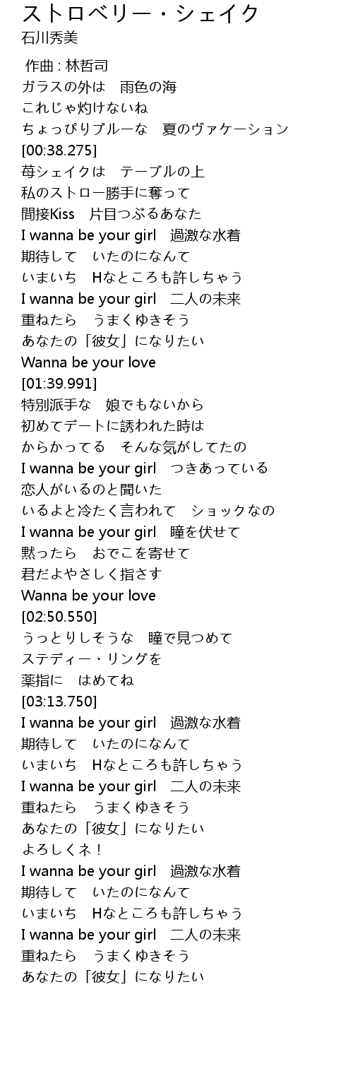 | [03:14.896] | I wanna be your girl 過激な水着 |