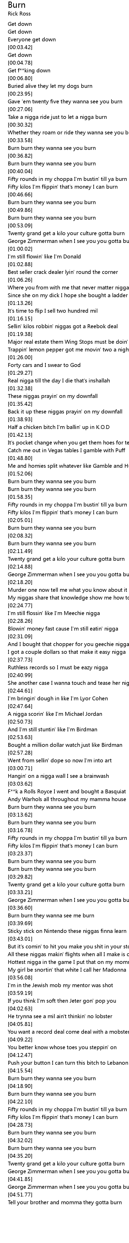 [02:15.47] George Zimmerman when I see you you gotta burn