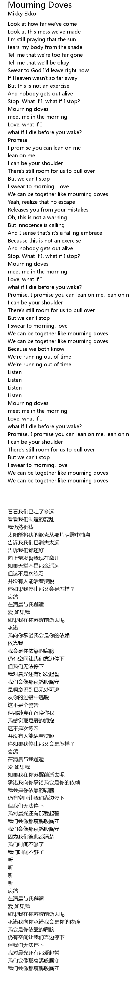 We can be together like mourning doves |