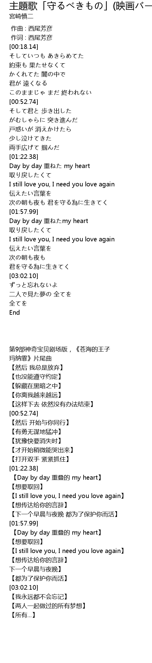 | [00:01.00] | 作词 : 西尾芳彦 |