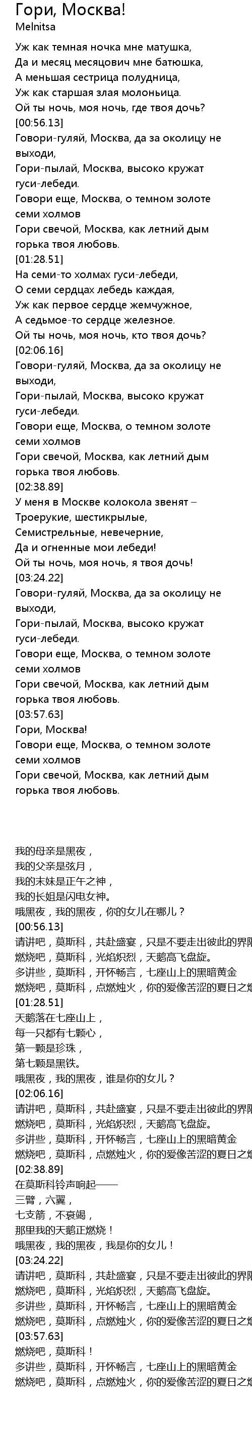 Гори свечой, Москва, как летний дым горька твоя любовь. |