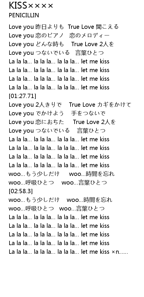 | [03:53.34] | La la la la la la la la la let me kiss n |
