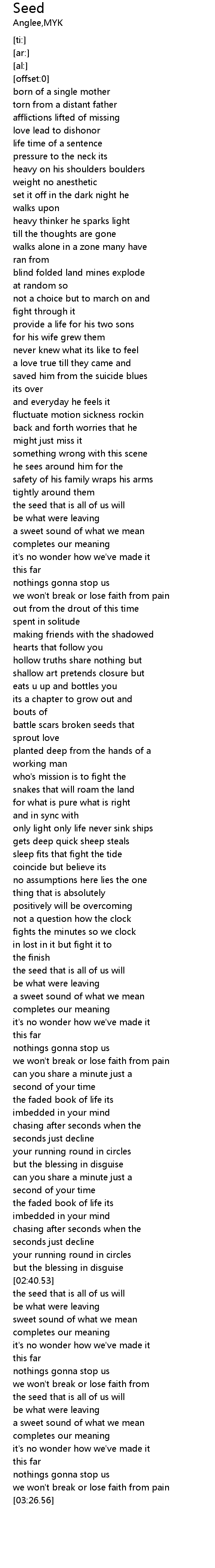 | [03:04.64] | the seed that is all of us will |