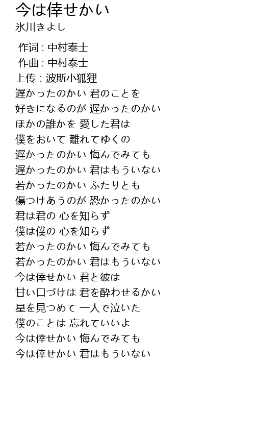 | [00:00.000] | 作词 : 中村泰士 |
