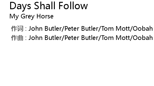| [00:00.000] | zuo qu : John Butler Peter Butler Tom Mott Oobah Butler Joe Nicklin |