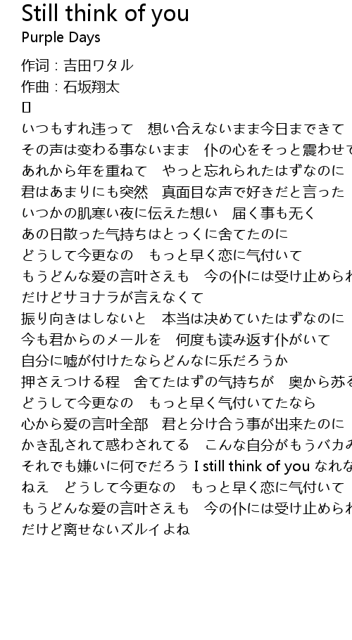 | それでも嫌いに何でだろう I still think of you なれないんだよ | |