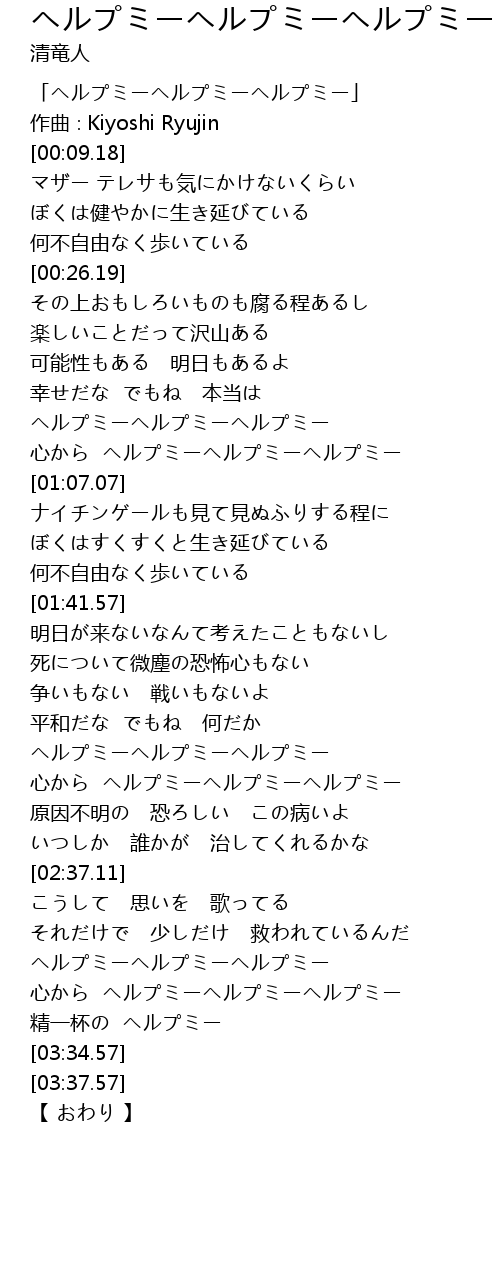| [03:20.09] | 心から ヘルプミーヘルプミーヘルプミー |