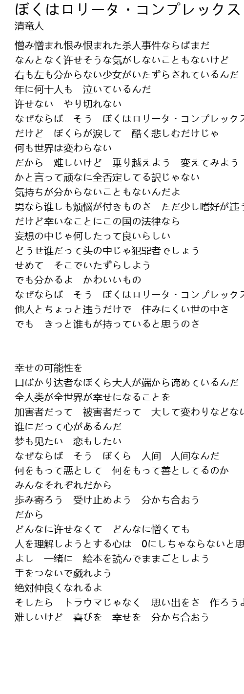 | なぜならば そう ぼくはロリータ・コンプレックスなんだ | |