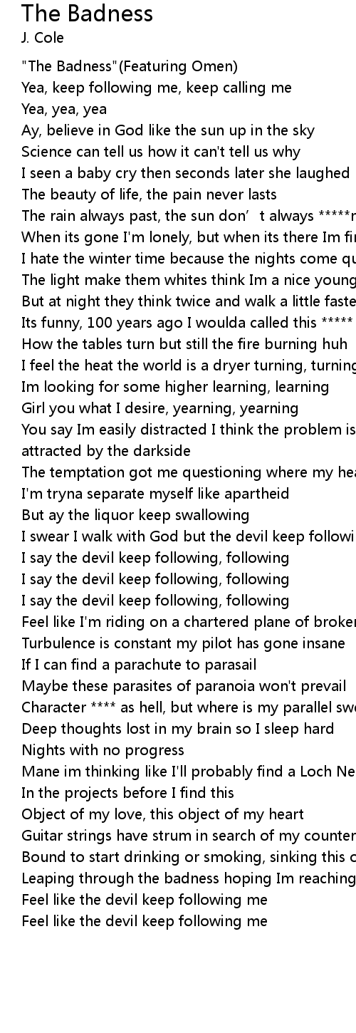 | [01:20.72] | I swear I walk with God but the devil keep following |