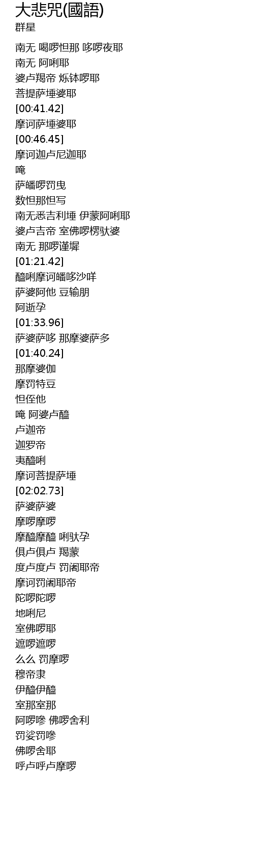 | [01:01.91] | 南无悉吉利埵 伊蒙阿唎耶 |