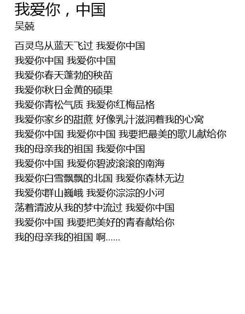 | 我爱你中国 我爱你中国 我要把最美的歌儿献给你 | |