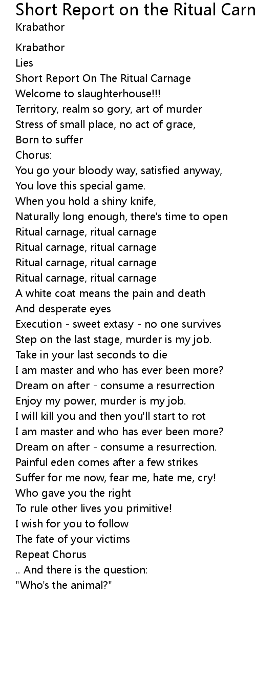| Short Report On The Ritual Carnage | |