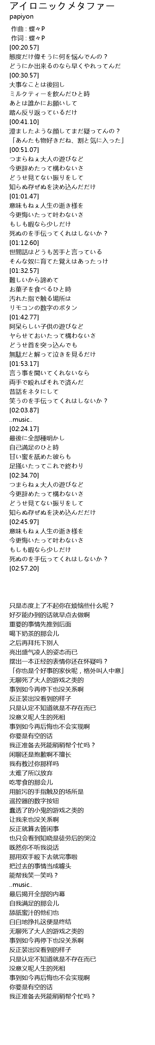 | [00:01.00] | 作词 : 蝶々P |