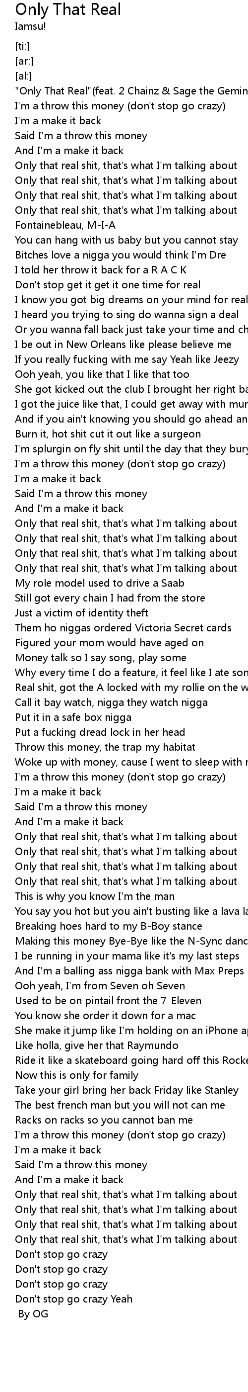 "Only That Real"(feat. 2 Chainz & Sage the Gemini) |