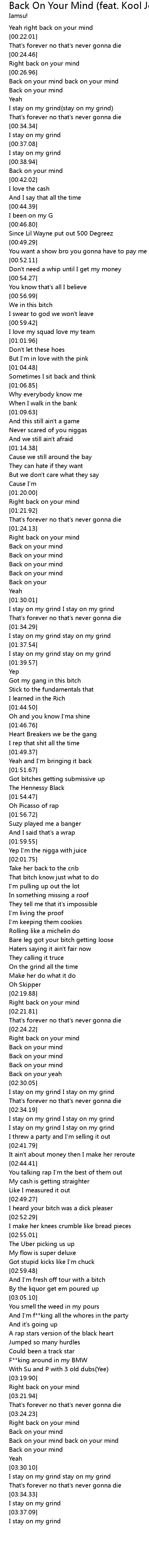 Yeah right back on your mind |