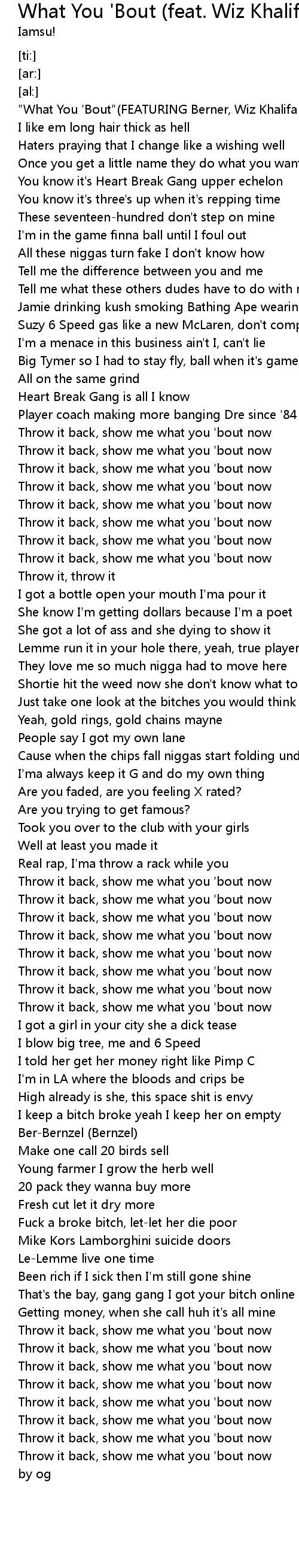 "What You 'Bout"(FEATURING Berner, Wiz Khalifa & P-Lo) |