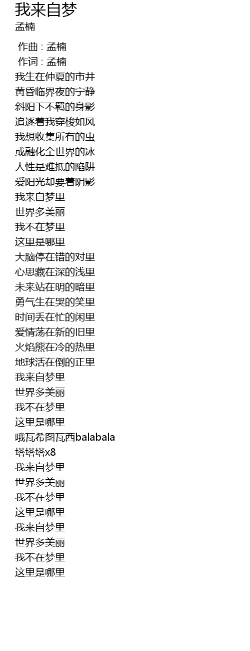 | [01:32.92] | wǒ lái zì mèng lǐ |