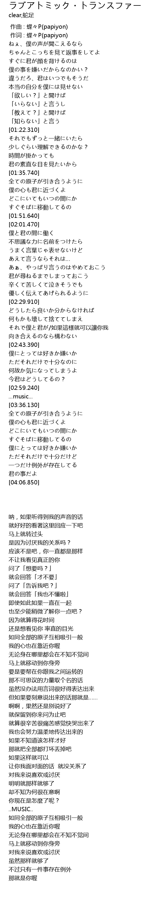 | [00:01.00] | 作词 : 蝶々P(papiyon) |