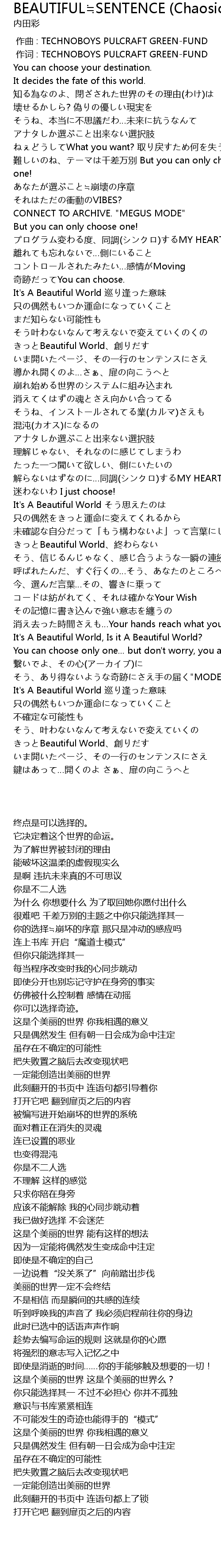 | [00:41.630] | あなたが選ぶこと≒崩壊の序章 それはただの衝動のVIBES? |