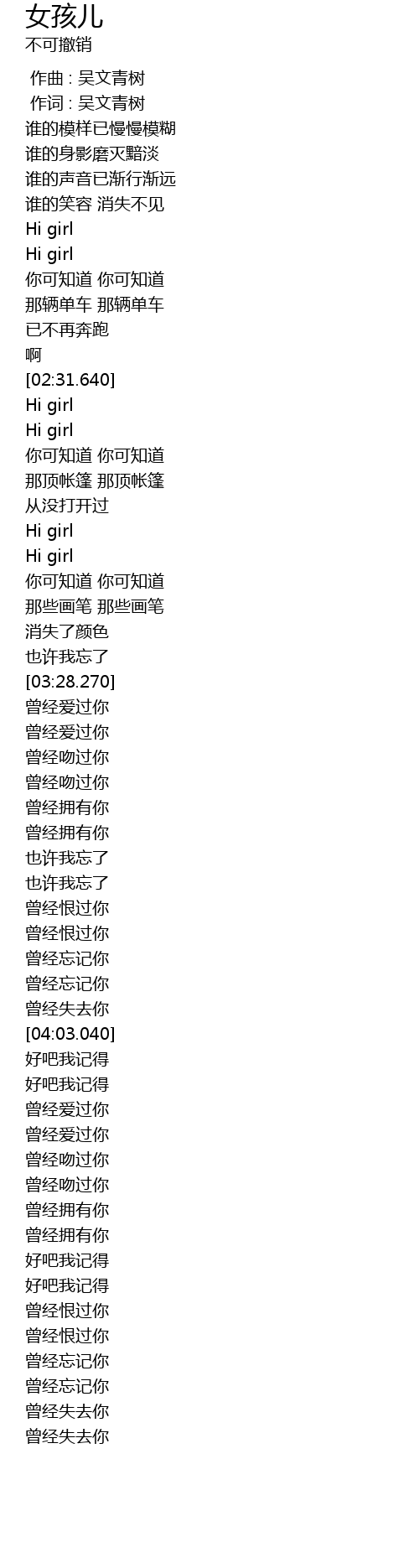 | [00:00.00] | zuo qu : wu wen qing shu |
