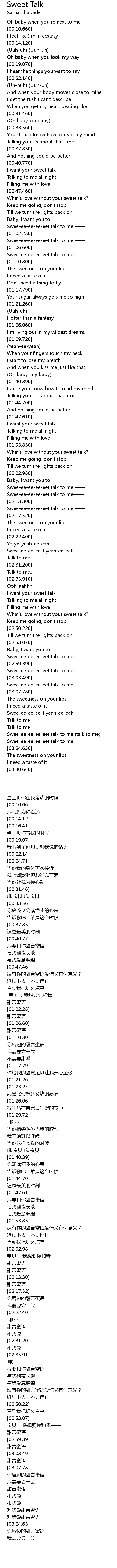 | [02:55.340] | Swee-ee-ee-ee-eet talk to me —— |