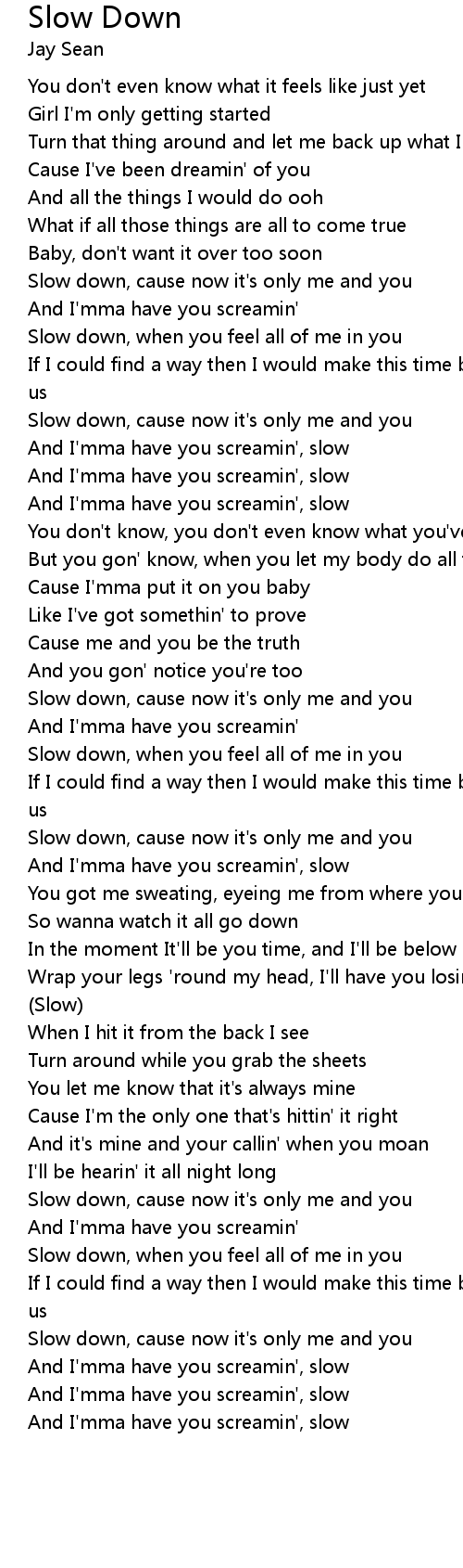 Slow down, cause now it's only me and you |