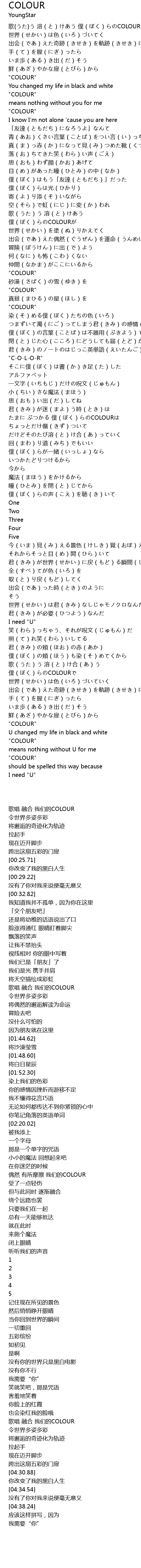 | [02:44.99] | たまに ぶつかる 僕(ぼく)らのCOLOURは |